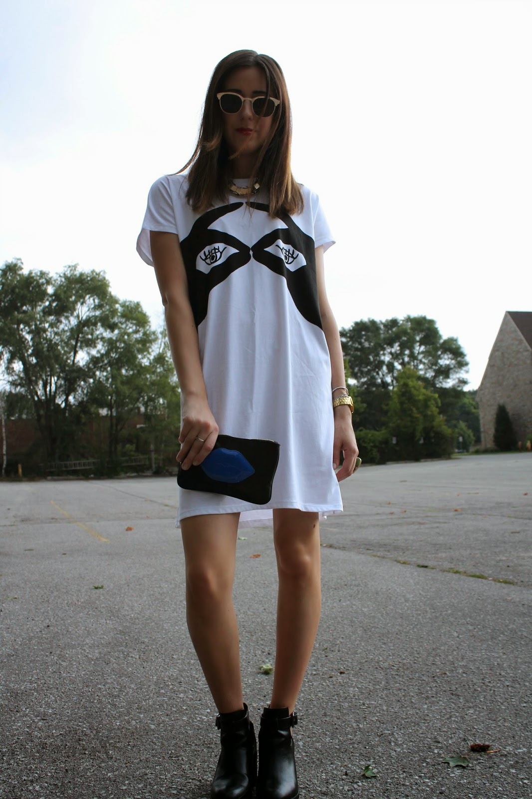 Dress: Zara (no longer available), Open Track Sole Boot: Zara, Necklace: Zara (no longer available), Watch: Nixon, Ring: Dara Ettinger, Sunglasses: Vintage, Clutch: NARS x Guy Bourdin Promiscuous Set Lips: MAC VIVA GLAM x Rihanna, Scent: Nirvana Black